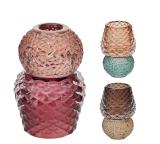 Γυάλινο 2πλο κηροπήγιο σε 3 χρωμ.,7.5x11cm