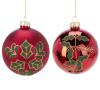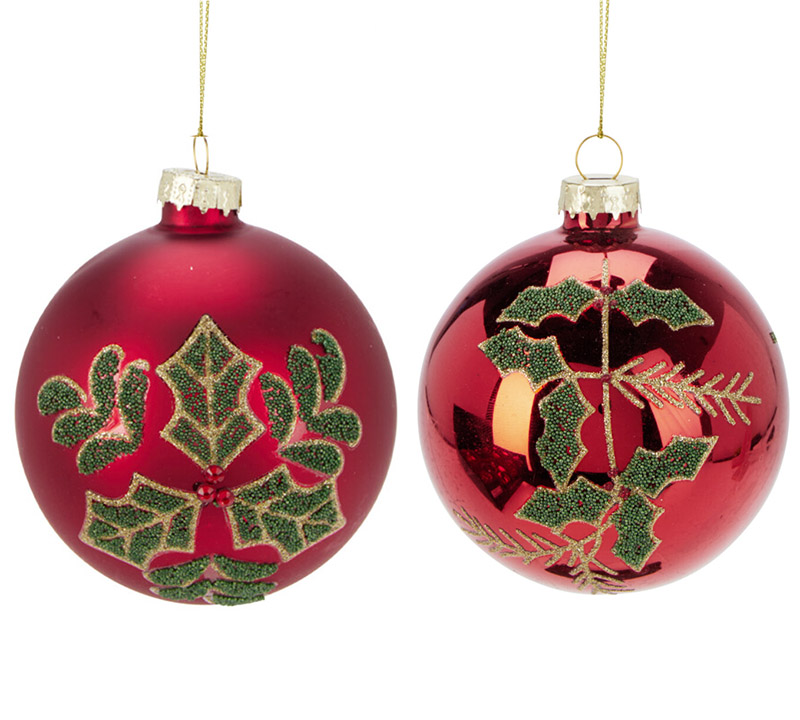 Γυάλινη μπάλλα κόκκινη με φύλλα γκυ 8cm | ZAROS