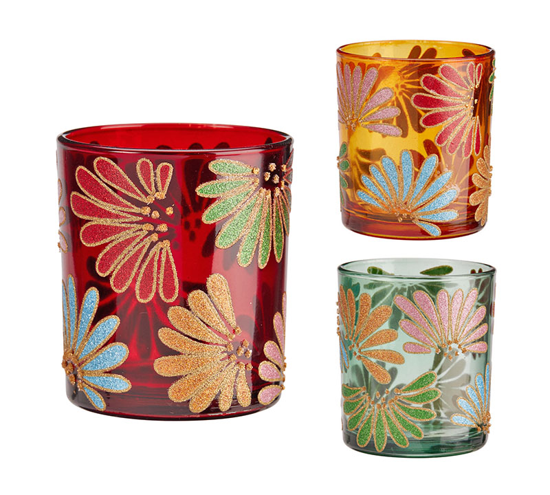 Γυάλινο φανάρι "Flower" σε 3 χρωμ.,9x10cm
