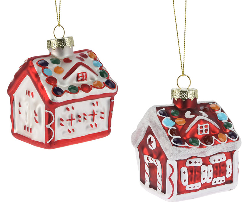 Γυάλινο στολίδι σπιτάκι σε 2 σχδ.,6.5x9cm | ZAROS
