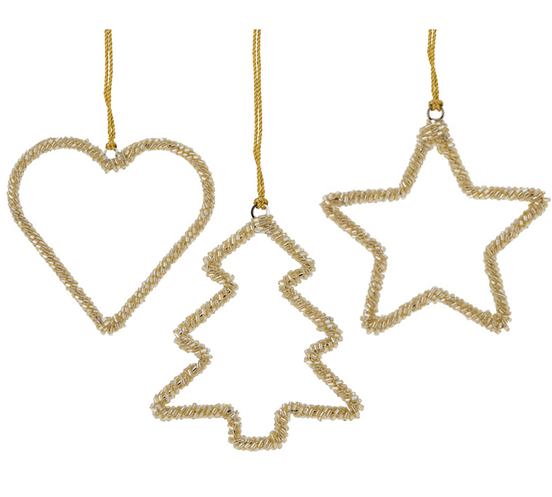 Στολίδια με γυάλ. χάντρες χρυσές, 3σχδ.,10cm