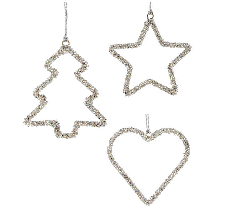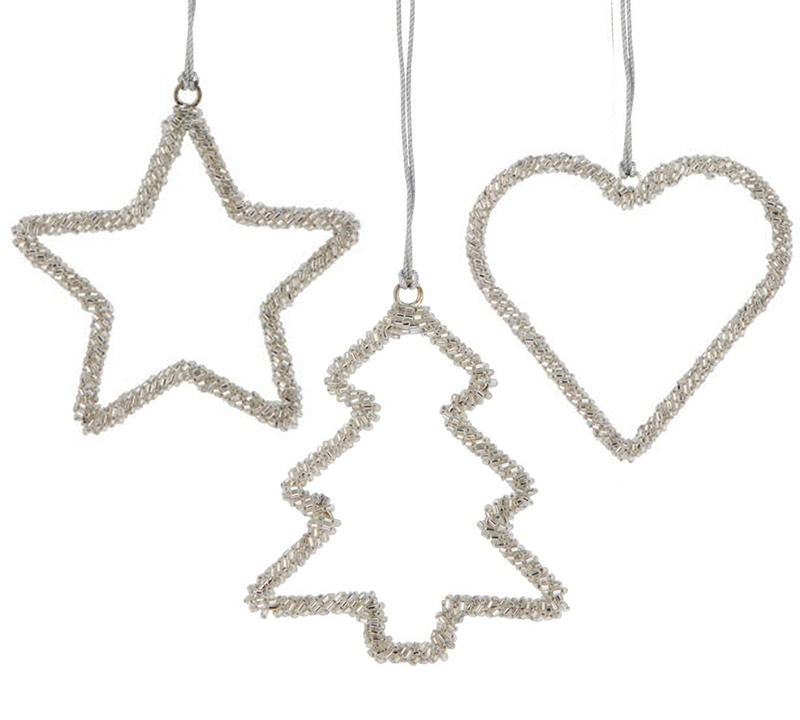 Στολίδια με γυάλ. χάντρες ασημί, 3σχδ.,10cm