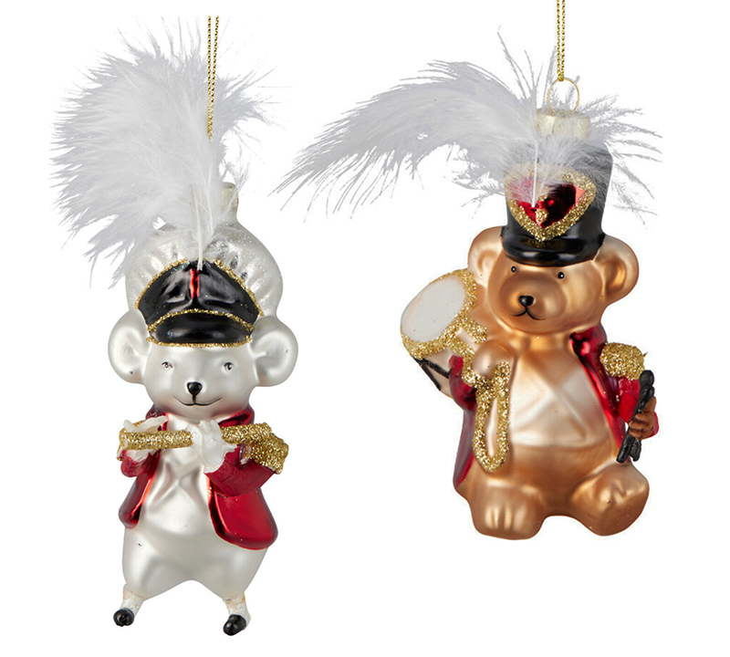 Γυάλινα στολίδια ποντικάκι & αρκουδάκι 11.5cm με στολή | ZAROS