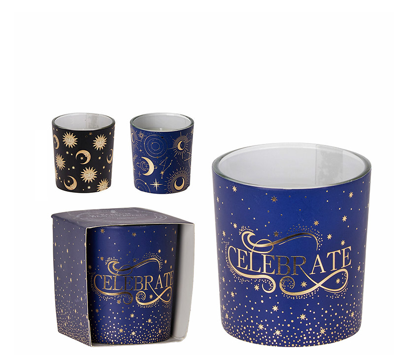 Αρωμ.κερί σε γυαλί 7x7,5cm, μπλε/χρυσό ντεκορ.