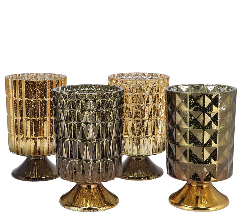 Γυάλινο κηροπήγιο με πόδι πράσινο-χρυσό 17cm