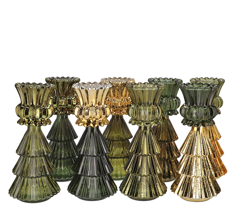 Γυάλινο βάζο σχ.έλατο πράσινο-χρυσό 22cm