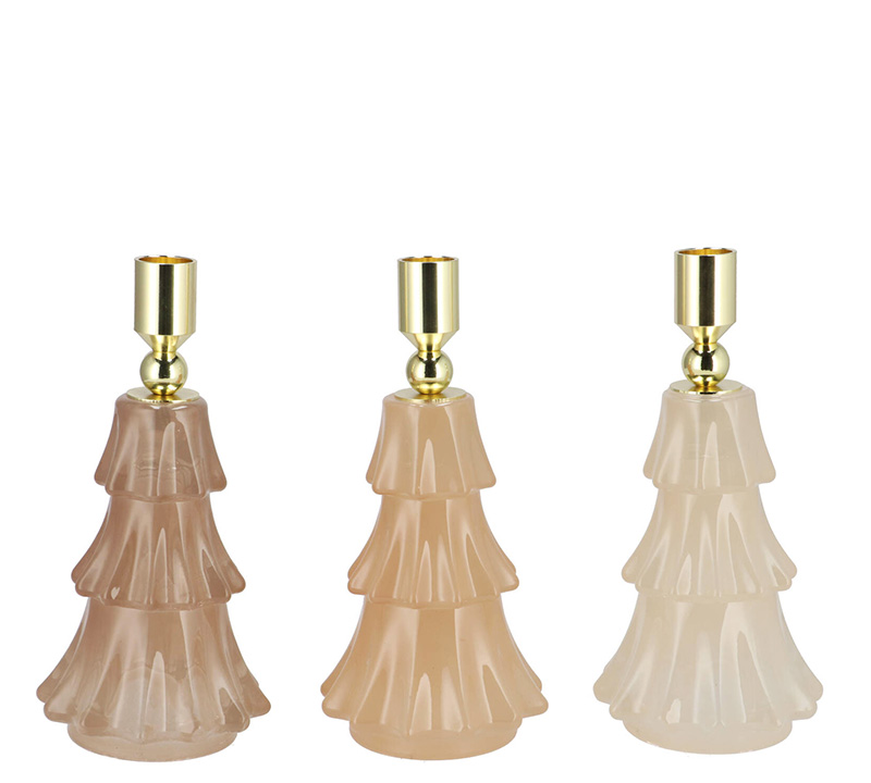 Γυάλινο κηροπήγιο σχ.έλατο κρεμ-σωμόν 13cm