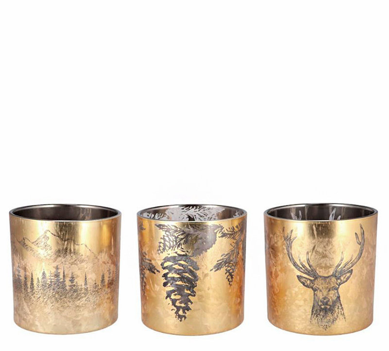 Γυάλινο φανάρι για ρεσό αντικέ χρυσό 13cm