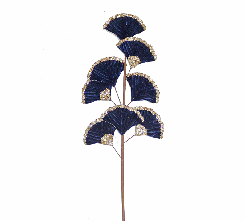Κλαδί φύλλα πάπυρου μπλέ βελούδο 65cm