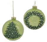 Γυαλ.μπάλλα στεφάνι & έλατο λαδί,10cm