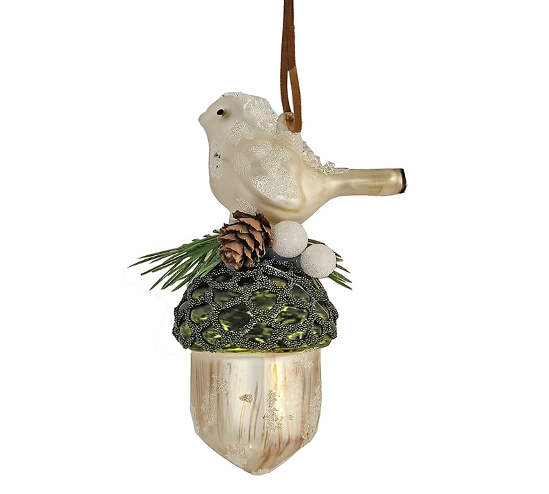 Γυάλινο στολίδι βαλανίδι με πουλάκι 13cm | ZAROS