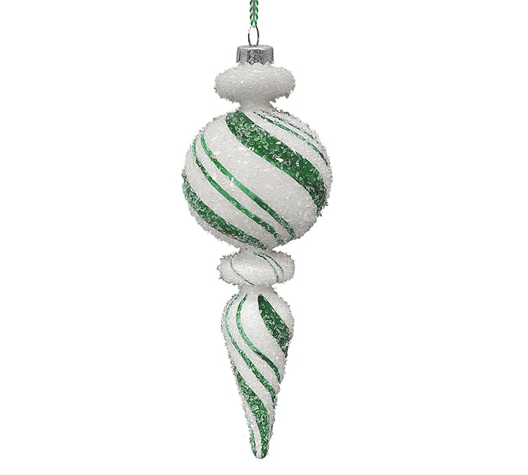 Γυάλινο μακρύ στολίδι στριφτό σχ.πρασινο/λευκό 20cm | ZAROS