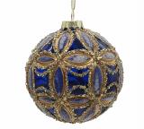 Γυαλ.μπάλλα σχ.φύλλα μπλε / χρυσή 10cm