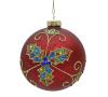 Γυαλ.μπάλλα κόκκινη με πολυχρ.φυλλα γκυ 8cm | ZAROS