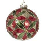 Γυάλ.μπάλλα κόκκινο/πράσινο λουλούδι 12cm