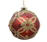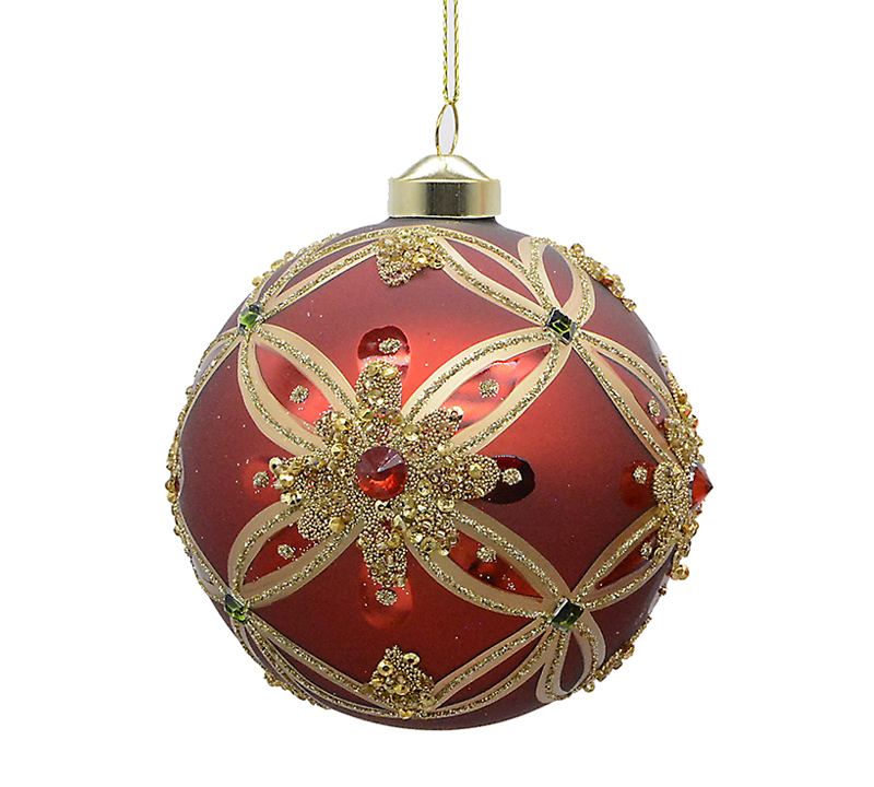 Γυαλ.μπάλλα baroque με πέτρες κοκκινη/χρυσή 8cm