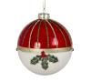 Γυάλ.μπάλλα κοκκινες ρίγες & φυλλα γκύ 8cm | ZAROS
