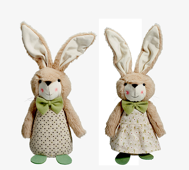 Όρθιος υφασμάτινος λαγός μπεζ/πρασ. 2σχ.38cm | ZAROS