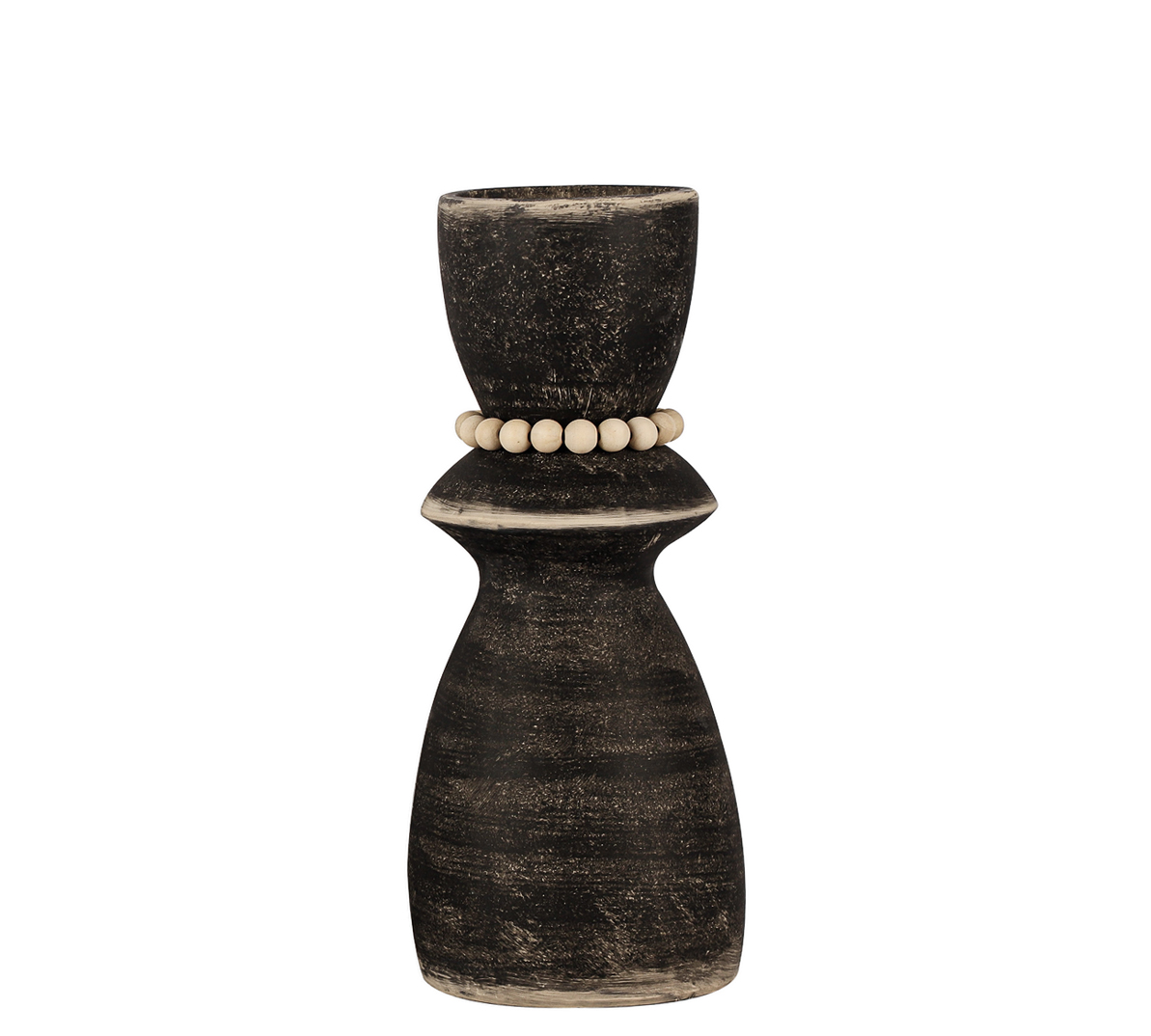 Βάζο παλαιωμένο καφέ με ξύλινες χάντρες 38cm | ZAROS