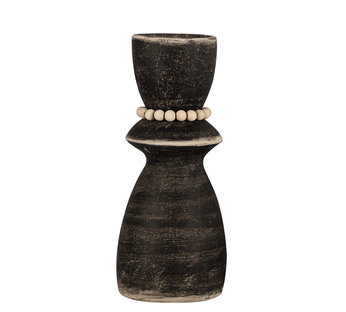 Βάζο παλαιωμένο καφέ με ξύλινες χάντρες 29,5cm